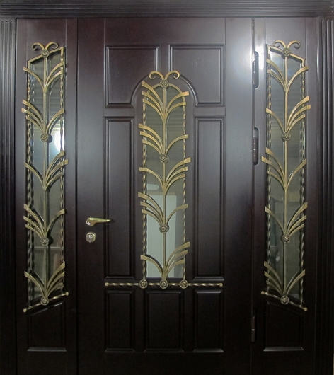 Наружняя отделка: панель МДФ шпон со стеклом и ковкой