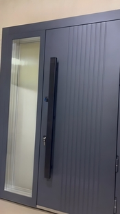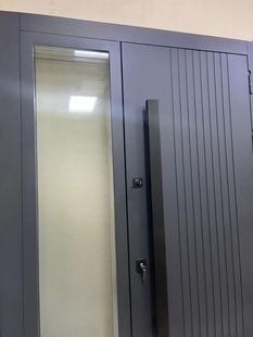 Входная термодверь с остекленной боковой вставкой, бугельной ручкой и серыми панелями МДФ антрацит — это надёжная защита и эстетика в одном решении. МДФ-панели не выгорают на солнце и устойчивы к царапинам. Подчёркивают контраст или плавность перехода между материалами. Отделка дополняет экстерьер и подчёркивает статус владельца.